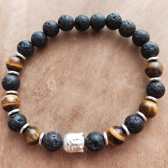 Bracelet Tibétain pierres de lave et Oeil de tigre 8mm