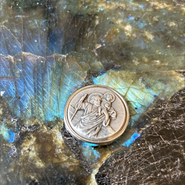 Plaque auto de Saint Christophe en métal argenté 4cm