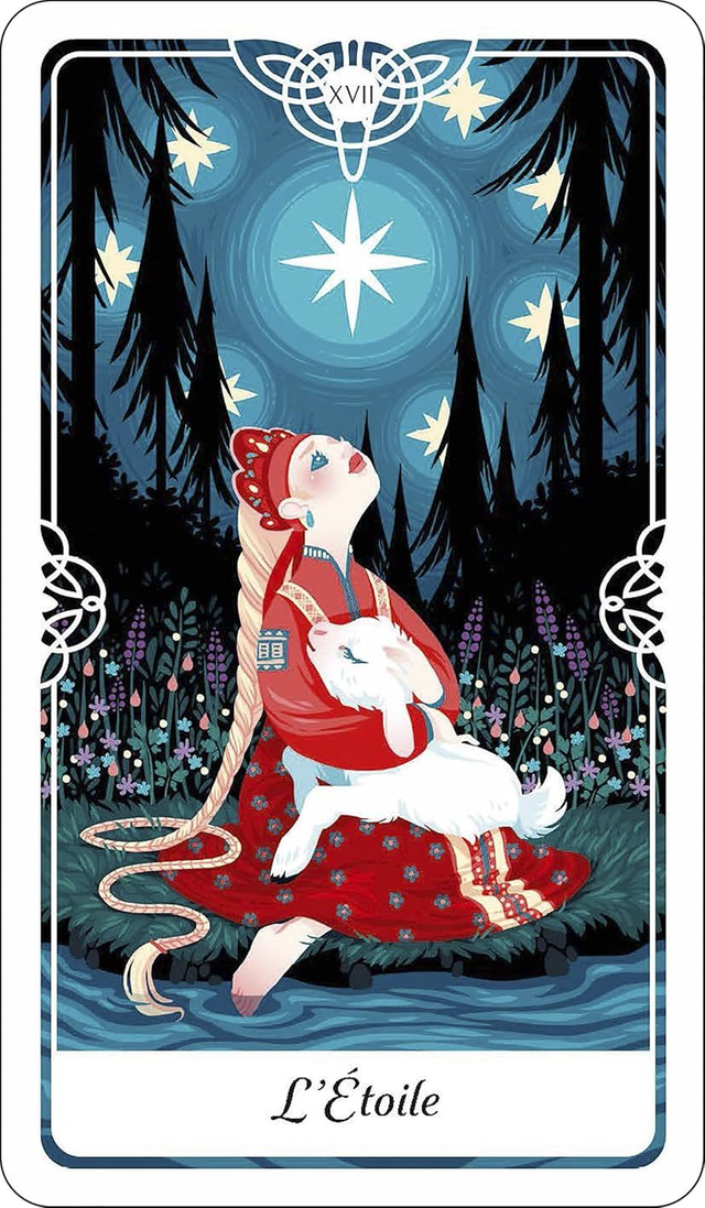 Magnifique réinterprétation du Tarot grâce aux divinités, au folklore et aux contes de fées du monde entier.Le chemin vers l'illumination est unique pour chacun d'entre nous, mais la plupart des leçons que nous apprenons sont des histoires communes transmises entre les cultures et les générations. Yoshi Yoshitani insuffle à ces cartes une vision du monde et une sélection originale de fables et de contes populaires issus de cultures du monde entier.Les cartes de l'arcane majeur sont animées par des personnages d'histoires populaires devenant archétypes, comme dans la fable de la petite sirène naïve (le Fou), la Belle et la Bête (les Amoureux) ... Les archétypes des arcanes mineurs - centrés sur les combinaisons de tasses, de pièces de monnaie, d'épées et de baguettes - sont enrichis par diverses fables culturelles, mythologies anciennes et légendes spirituelles telles que la femme grue (Japon), Aladin (Perse), Jack et le haricot magique (Angleterre),etc.